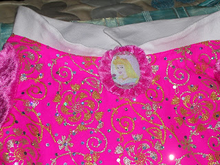 Para el cuerpo y las mangas utilicé el mismo patrón base con que le hago los vestidos, con la modificación del escote que intenté simular el de la famosa princesa de Disney. Las mangas aunque no se aprecia bien en la foto están terminadas en punta. Para la falda corté una falda de capa. En un primer momento la hice de nejas y godet pues era lo más parecido al vestido de La Bella Durmiente. Pero una vez cosido al cuerpo cuando se lo probé a mi hija le quedaba fatal pues acentuaba demasiado su delgadez. Menos mal que tenía tela suficiente y pude cambiar la falda, por una de capa entera que la verdad le sentaba bastante mejor.